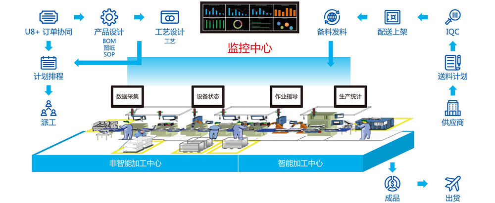 | 兼容主流的 CNC、PLC、种种智能终端 | 围绕生产焦点,,,,,,收罗、传输、存储、管理工业大数据 | 以MES系统为焦点,,,,,,实现智能排产,,,,,,提高职员、装备、仓储效率 |